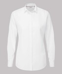 The Grace white uniform blouse has an elegant fly front, soft, feminine collar & feature back pleat.