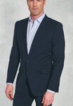 Single breasted slim fit jacket, shorter length, 2 button front, side vents, ticket pocket, slim lapels with saddle stitching, piano faced interior with slim pocket jets. Centre back length at size 40R = 75cm