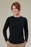 60% Cotton, 40% Acrylic 12 gauge knit. Crew neck, ribbed neck, tubular cuff and hem, contrast inner neck strip.