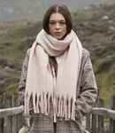 100% recycled polyester. Luxury soft touch fabric.Oversized styling.Chunky, wrap around design.Tassel trim.Removable adhesive fabric label.